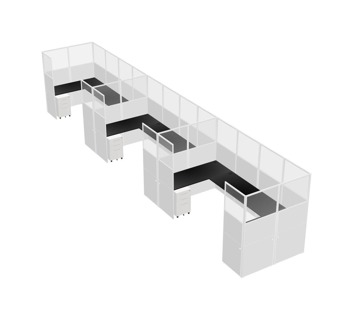 Black U-shaped Panel System For 3 Person + Metal Mobile Drawers For 3 User(s)