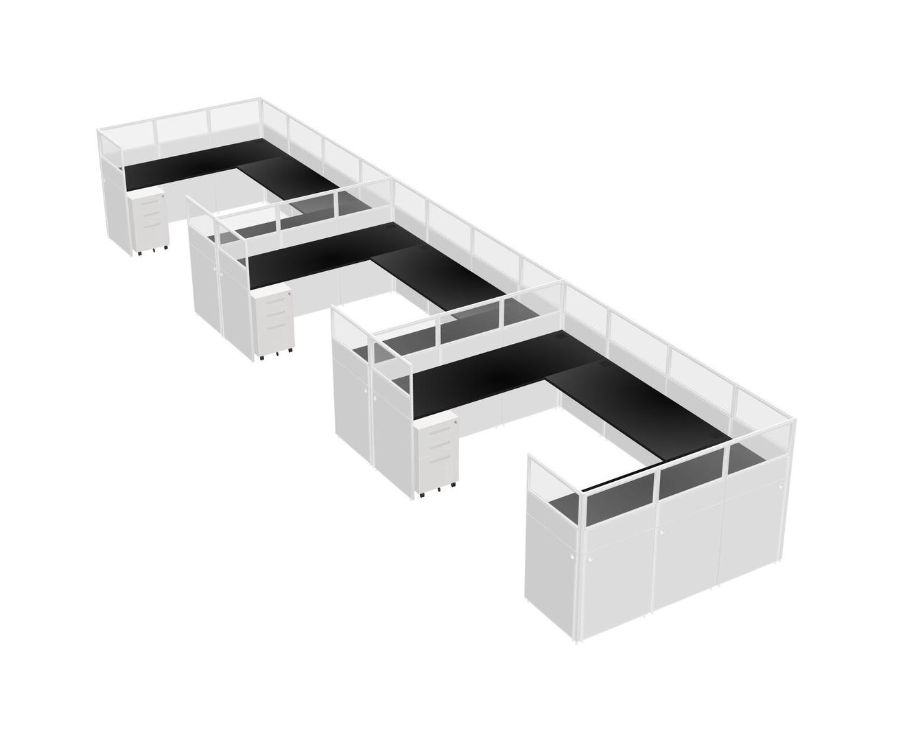 Black U-shaped Panel System For 3 Person + Metal Mobile Drawers For 3 User(s)