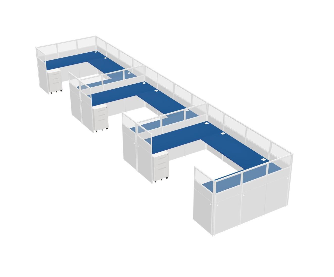 Prism Blue U-shaped Panel System For 3 Person + Metal Mobile Drawers For 3 User(s)