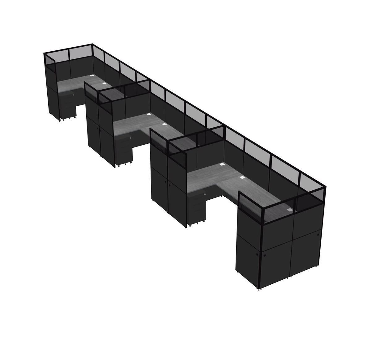 Grey U-shaped Panel System For 3 Person + Metal Mobile Drawers For 3 User(s)