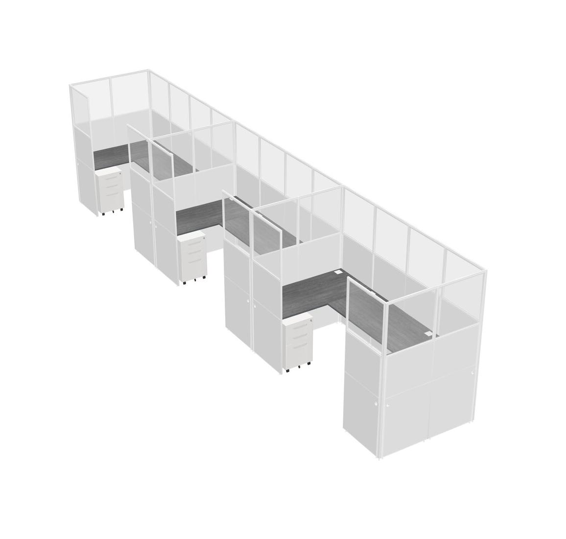 Grey U-shaped Panel System For 3 Person + Metal Mobile Drawers For 3 User(s)