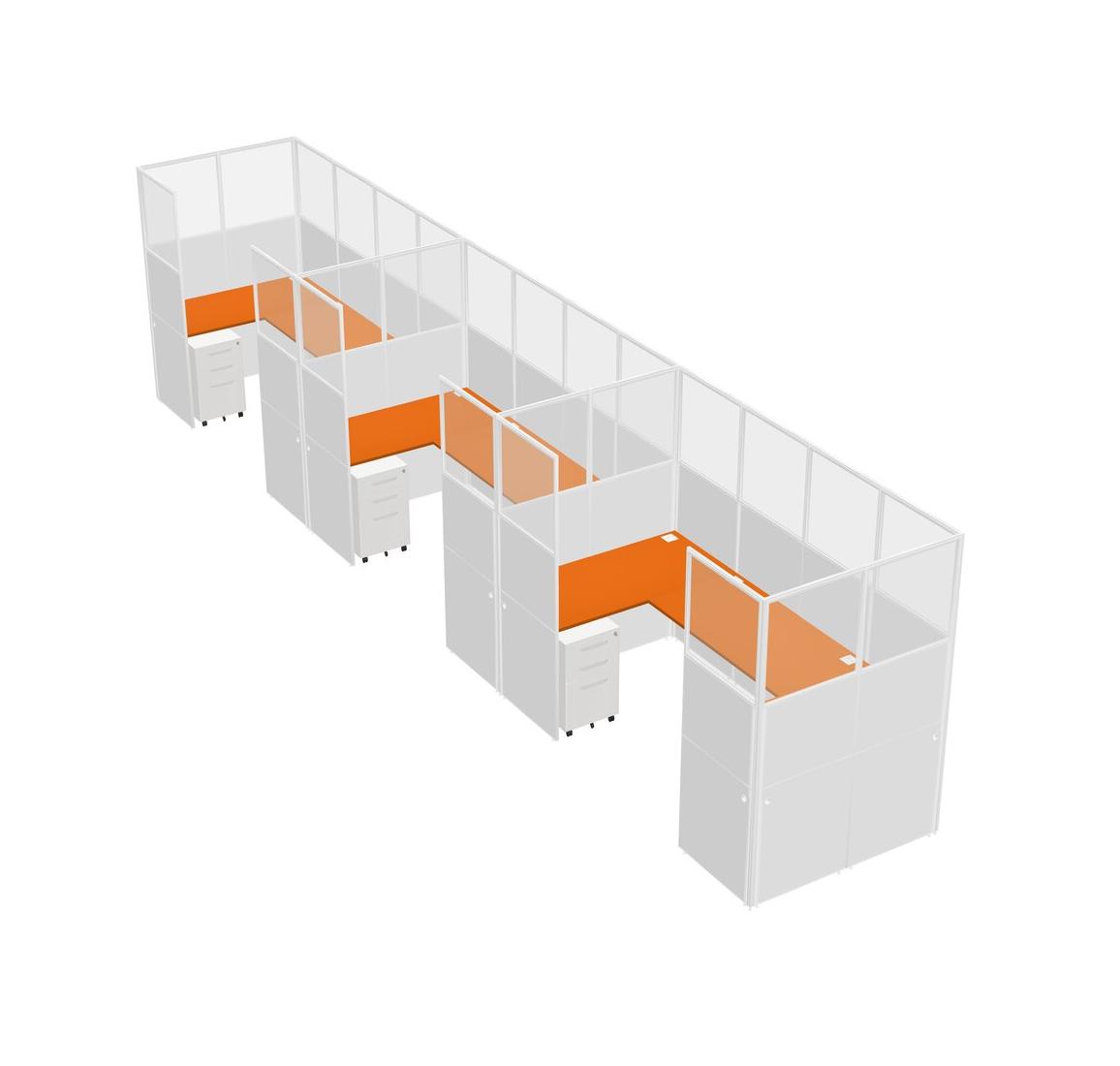 Orange U-shaped Panel System For 3 Person + Metal Mobile Drawers For 3 User(s)