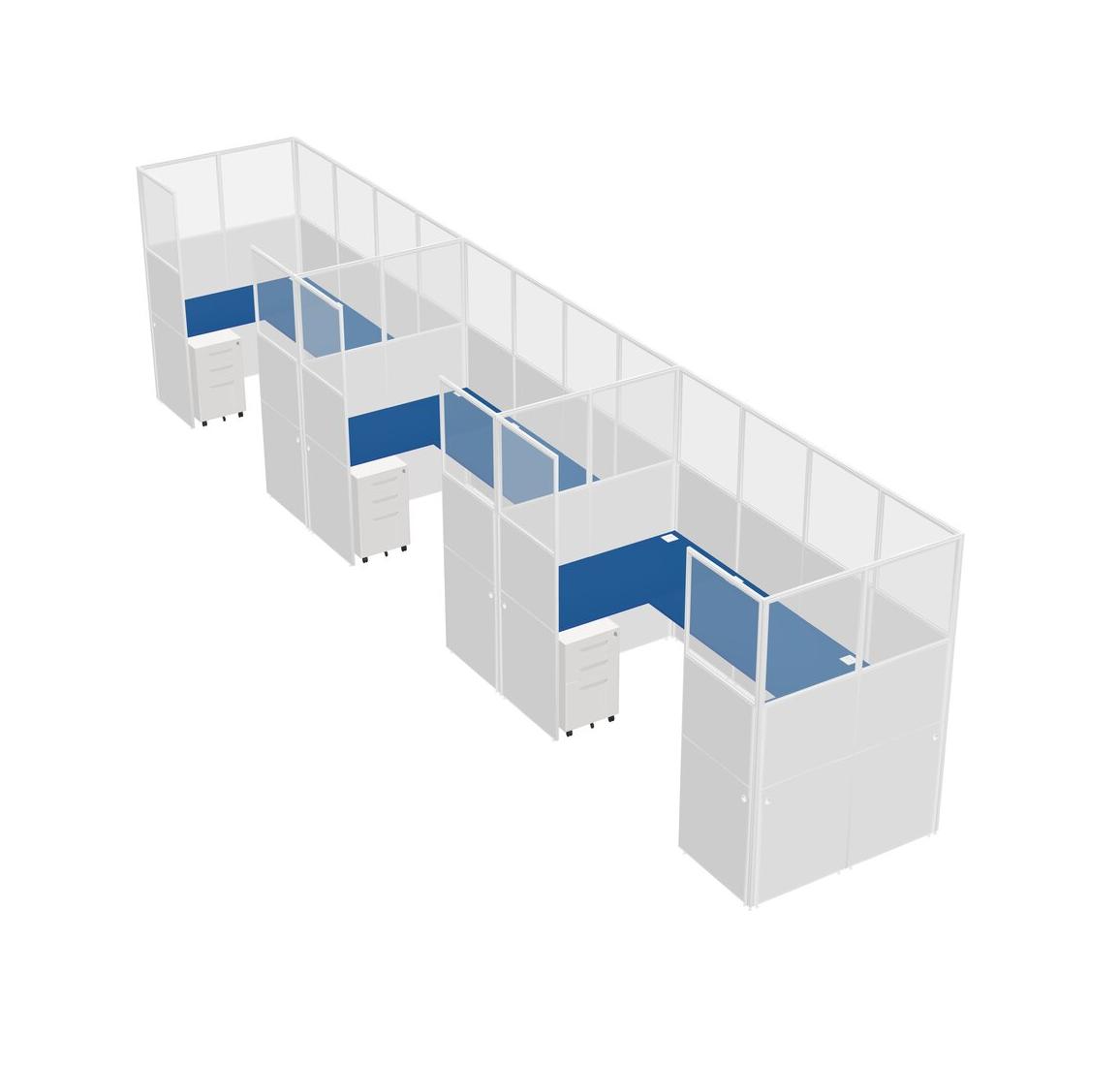 Prism Blue U-shaped Panel System For 3 Person + Metal Mobile Drawers For 3 User(s)