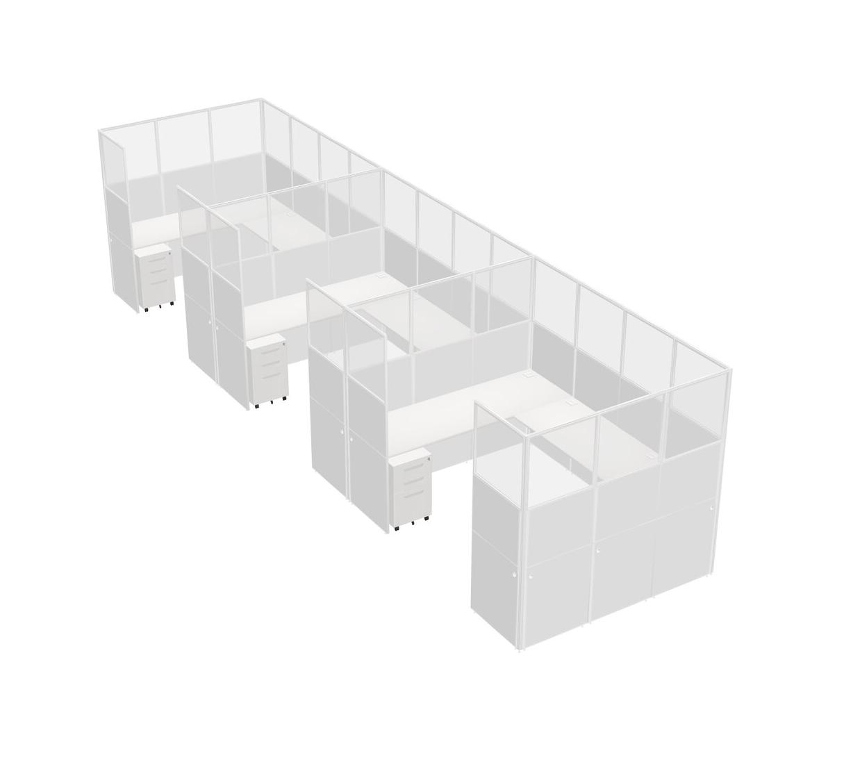 White U-shaped Panel System For 3 Person + Metal Mobile Drawers For 3 User(s)
