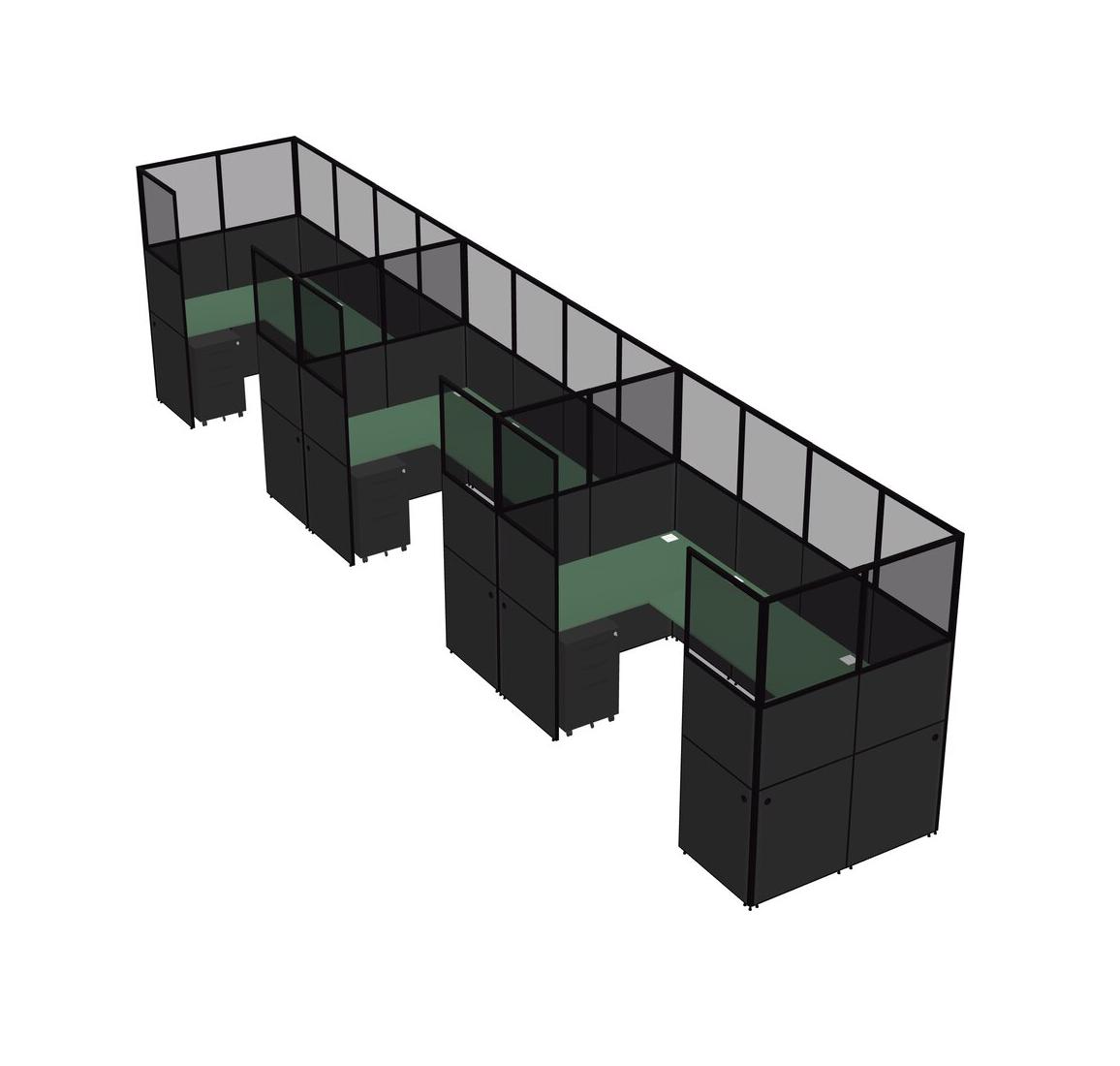 Green U-shaped Panel System For 3 Person + Metal Mobile Drawers For 3 User(s)