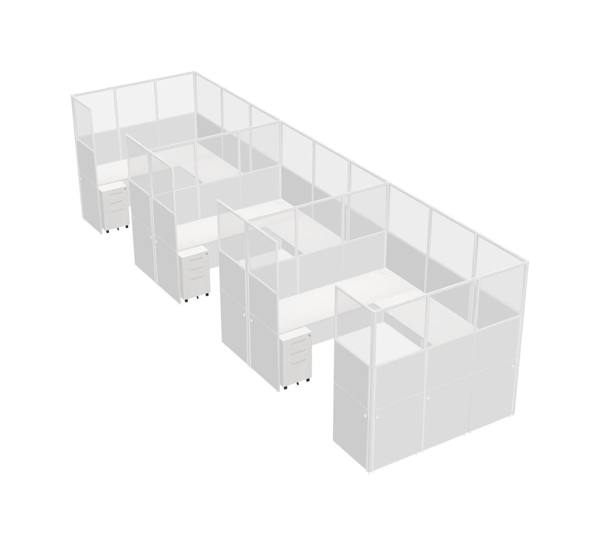 White U-shaped Panel System For 3 Person + Metal Mobile Drawers For 3 User(s)