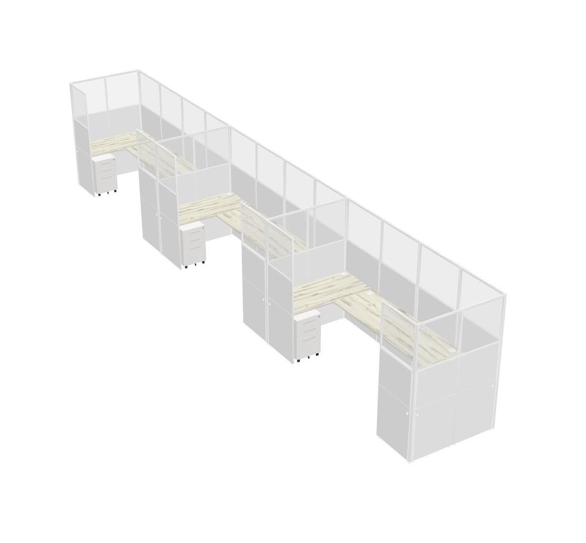 Heinne Holz U-shaped Panel System For 3 Person + Metal Mobile Drawers For 3 User(s)