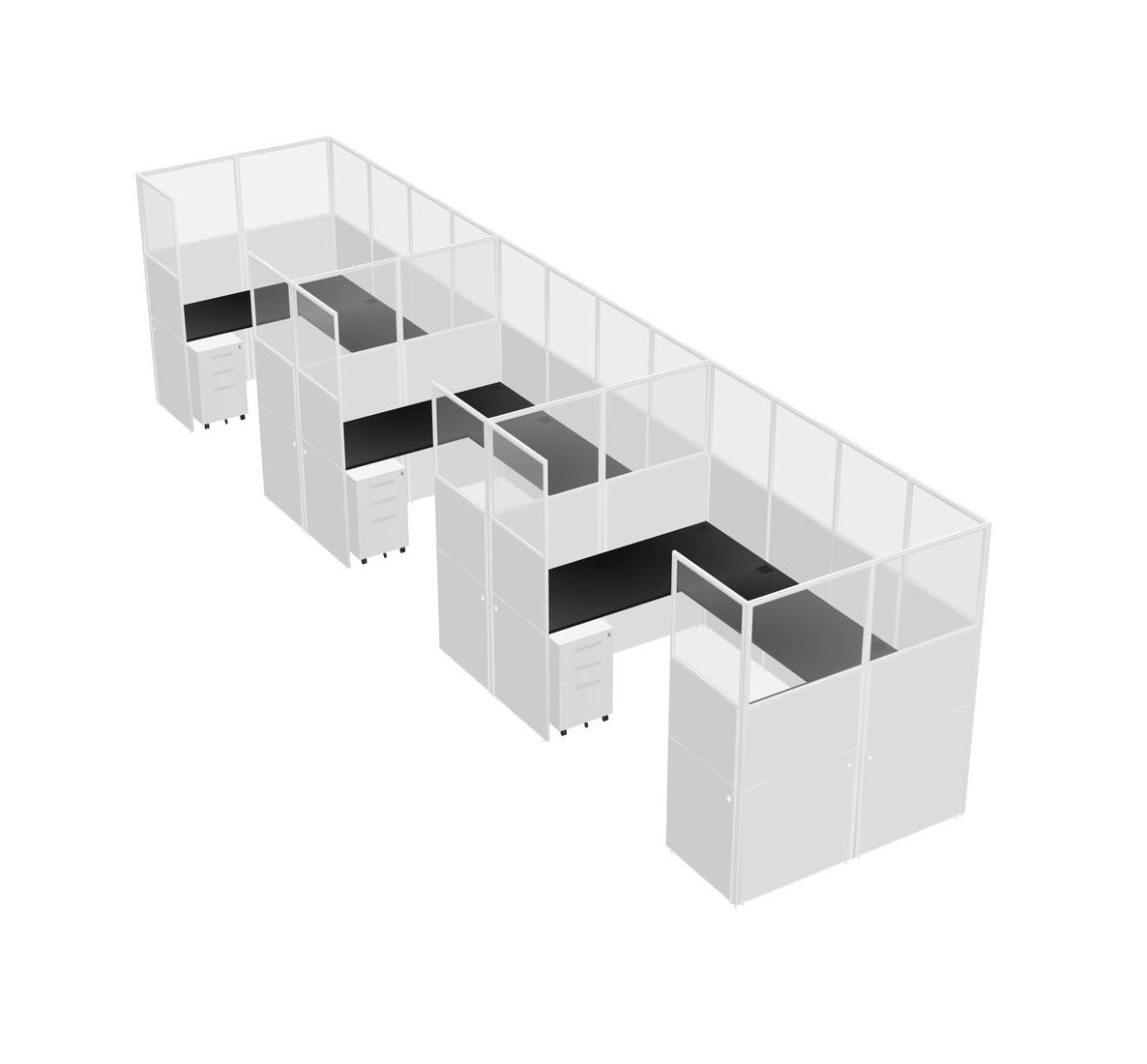 Black U-shaped Panel System For 3 Person + Metal Mobile Drawers For 3 User(s)