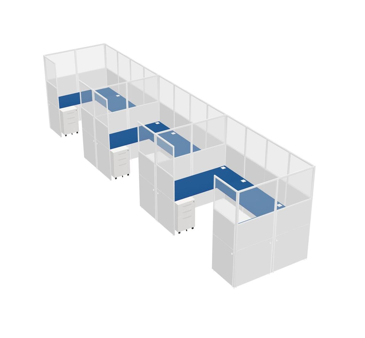 Prism Blue U-shaped Panel System For 3 Person + Metal Mobile Drawers For 3 User(s)
