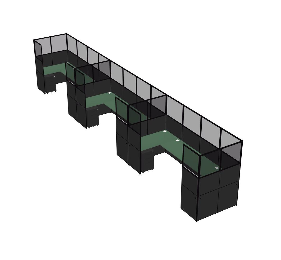 Green U-shaped Panel System For 3 Person + Metal Mobile Drawers For 3 User(s)