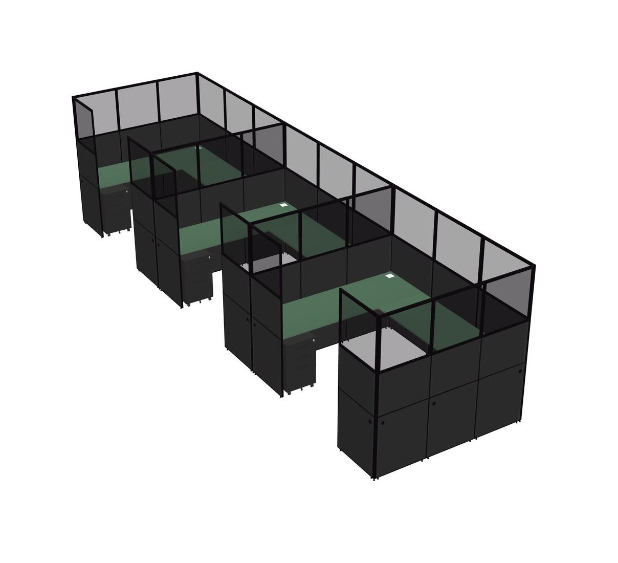 Green U-shaped Panel System For 3 Person + Metal Mobile Drawers For 3 User(s)