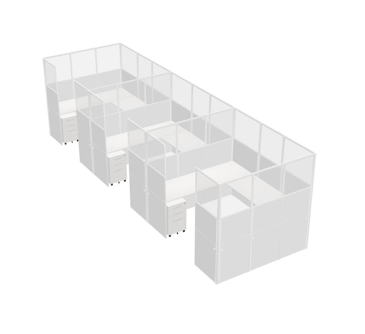 White U-shaped Panel System For 3 Person + Metal Mobile Drawers For 3 User(s)