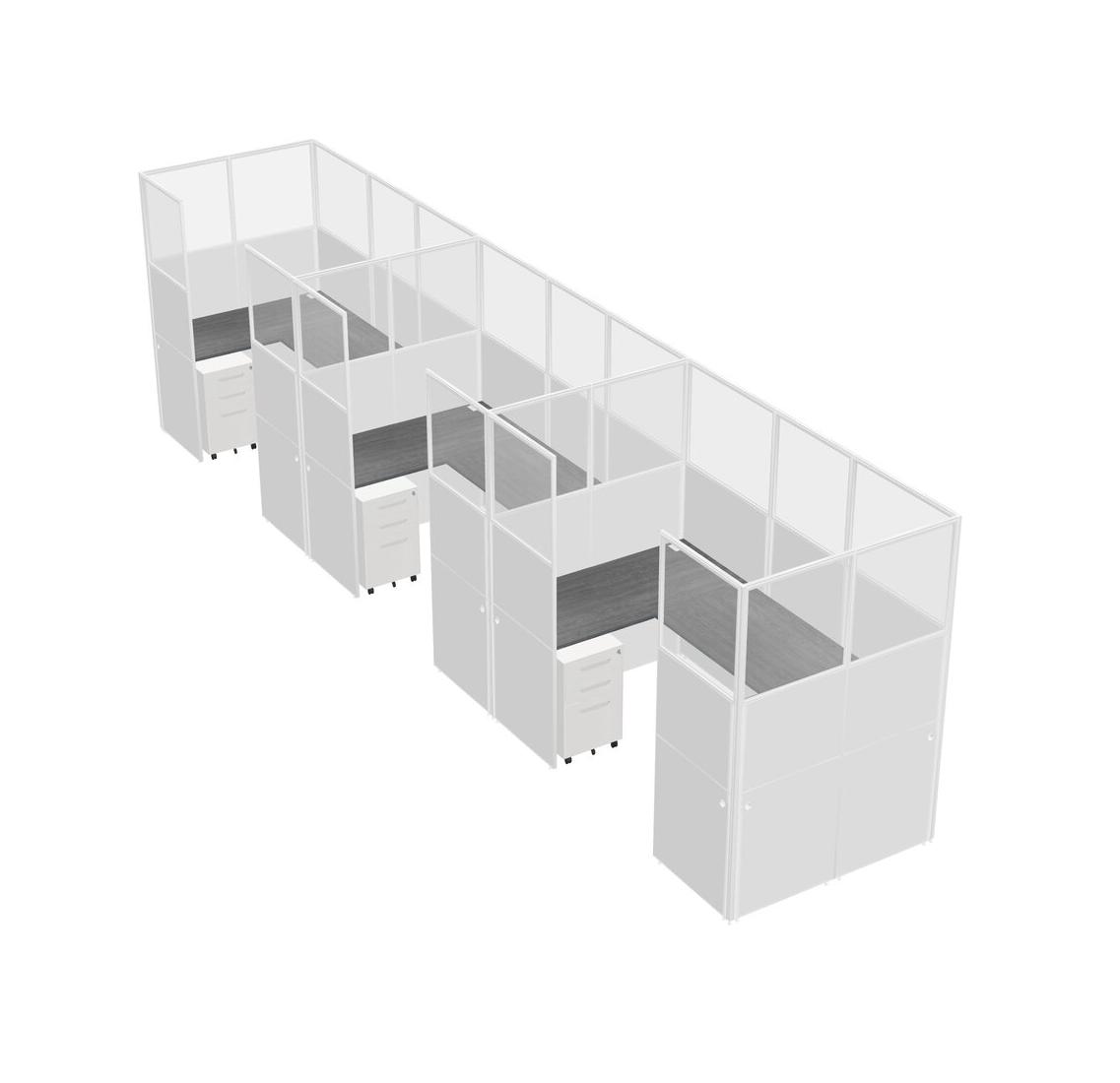 Grey U-shaped Panel System For 3 Person + Metal Mobile Drawers For 3 User(s)