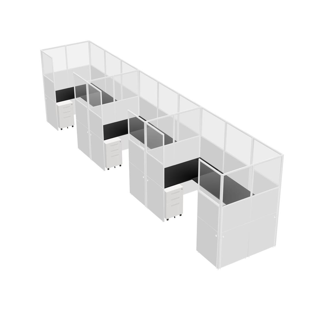 Black U-shaped Panel System For 3 Person + Metal Mobile Drawers For 3 User(s)
