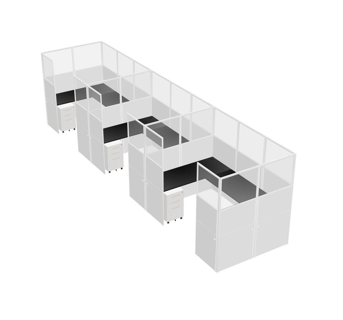 Black U-shaped Panel System For 3 Person + Metal Mobile Drawers For 3 User(s)