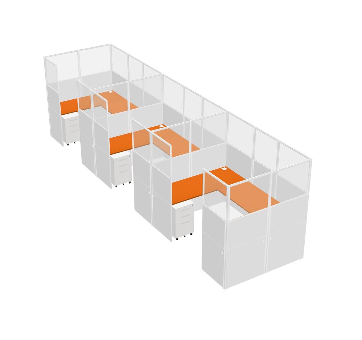 Orange U-shaped Panel System For 3 Person + Metal Mobile Drawers For 3 User(s)