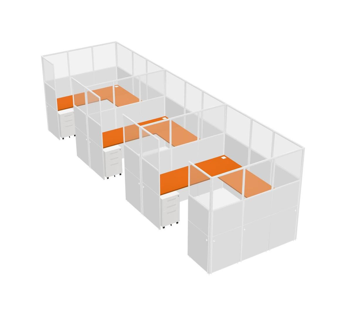 Orange U-shaped Panel System For 3 Person + Metal Mobile Drawers For 3 User(s)