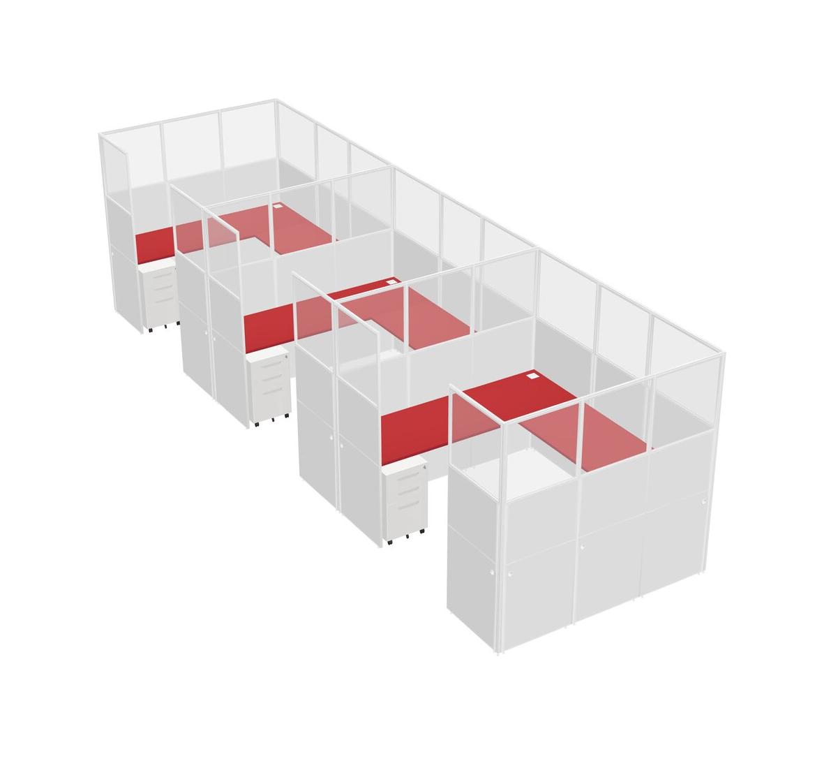 Prism Red U-shaped Panel System For 3 Person + Metal Mobile Drawers For 3 User(s)