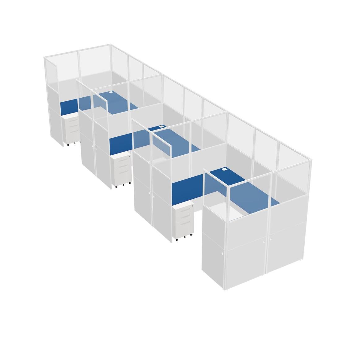 Prism Blue U-shaped Panel System For 3 Person + Metal Mobile Drawers For 3 User(s)