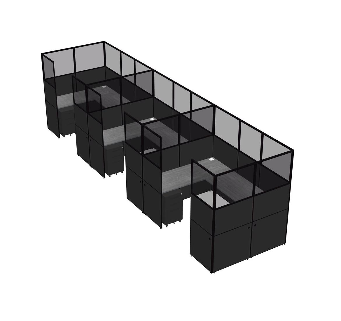 Grey U-shaped Panel System For 3 Person + Metal Mobile Drawers For 3 User(s)