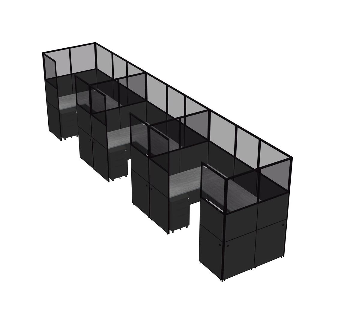 Grey U-shaped Panel System For 3 Person + Metal Mobile Drawers For 3 User(s)