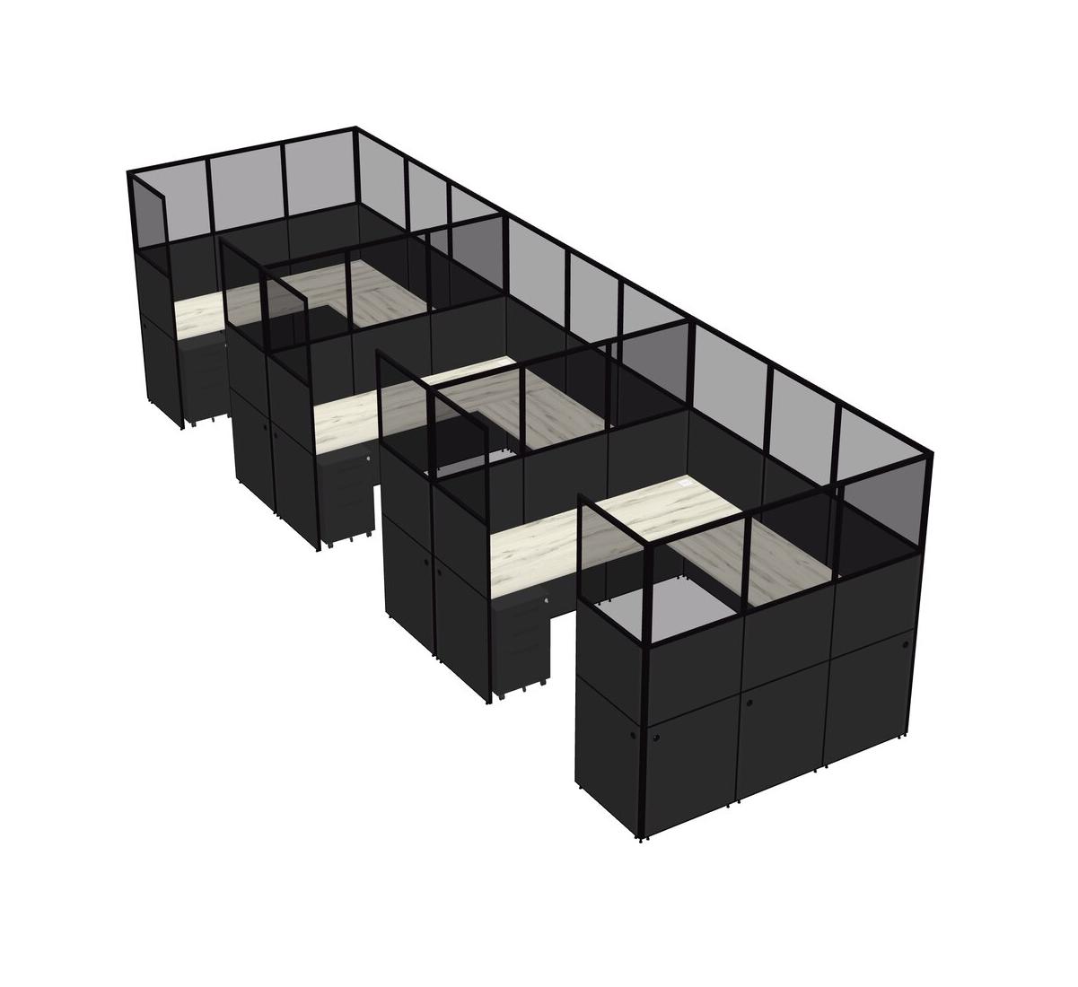 Heinne Holz U-shaped Panel System For 3 Person + Metal Mobile Drawers For 3 User(s)