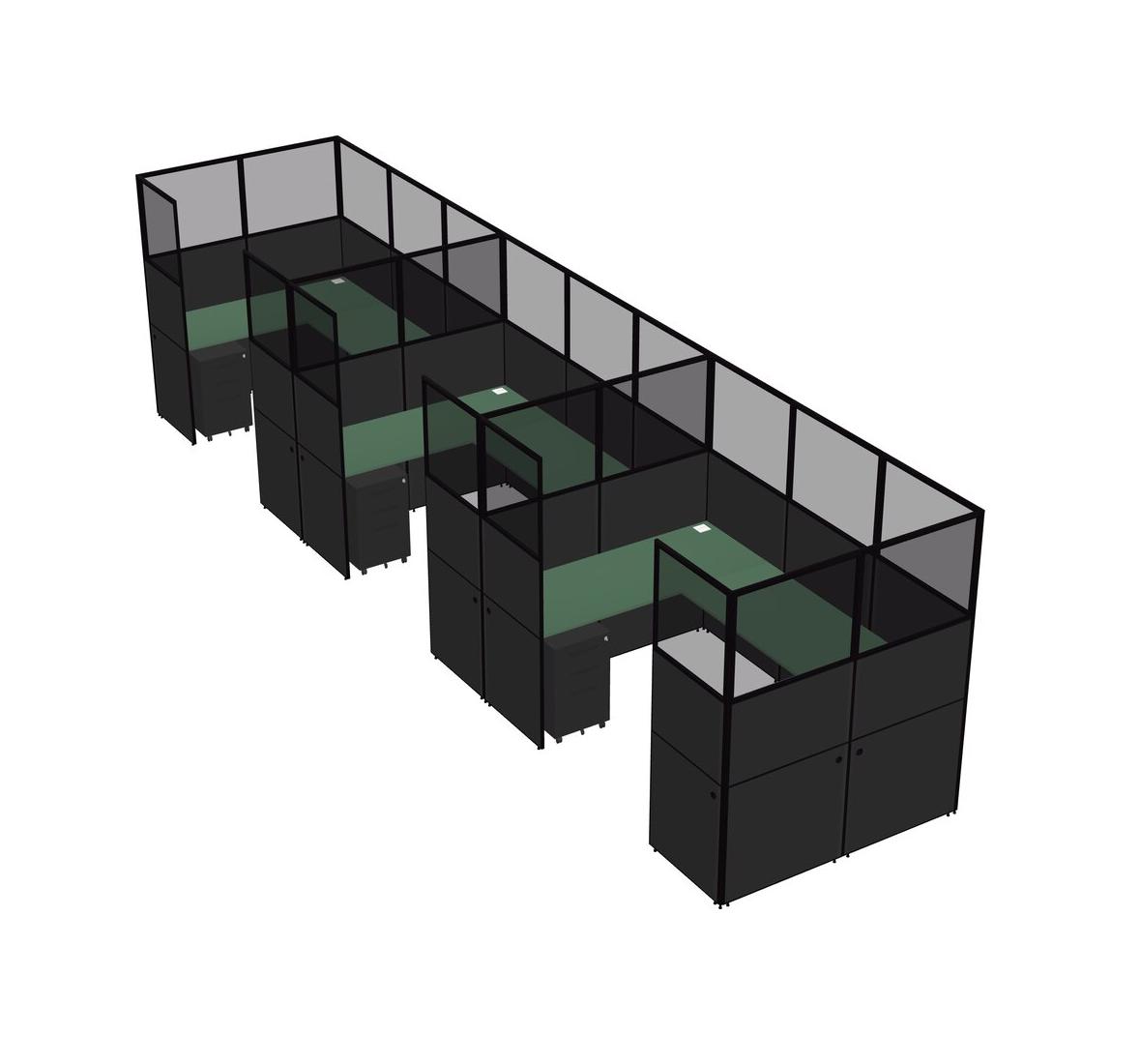 Green U-shaped Panel System For 3 Person + Metal Mobile Drawers For 3 User(s)