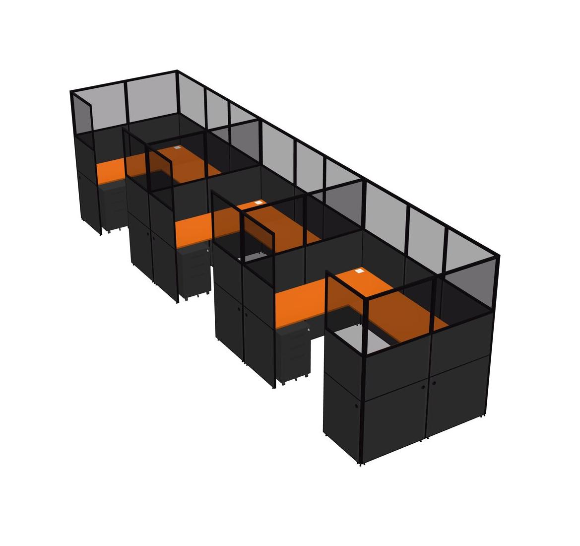 Orange U-shaped Panel System For 3 Person + Metal Mobile Drawers For 3 User(s)