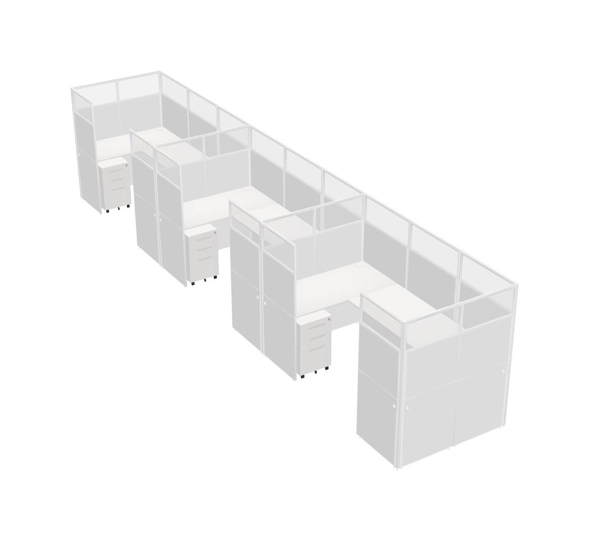 White U-shaped Panel System For 3 Person + Metal Mobile Drawers For 3 User(s)