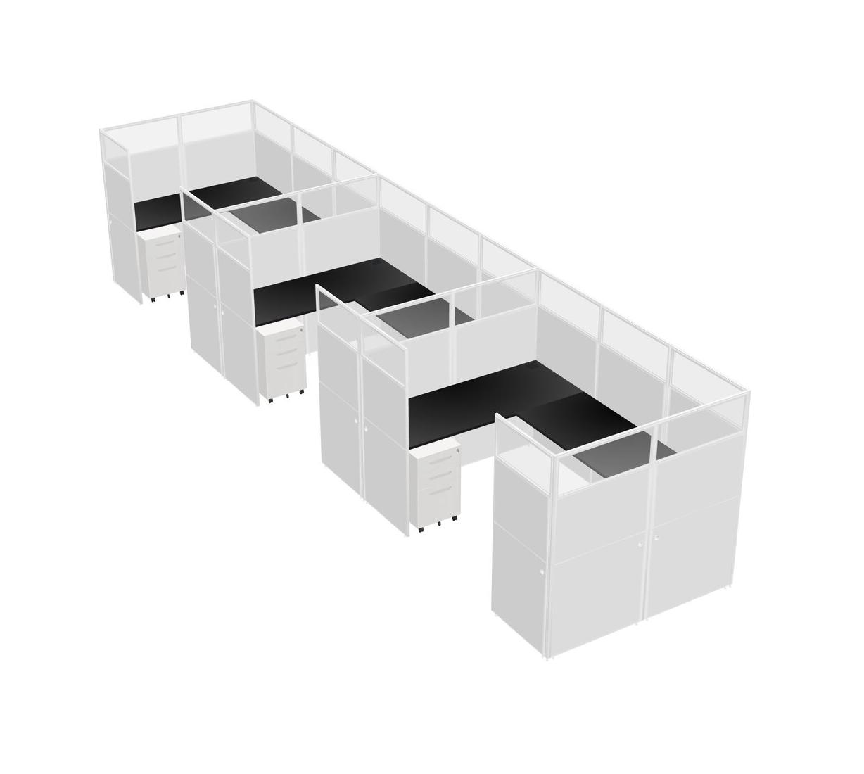 Black U-shaped Panel System For 3 Person + Metal Mobile Drawers For 3 User(s)