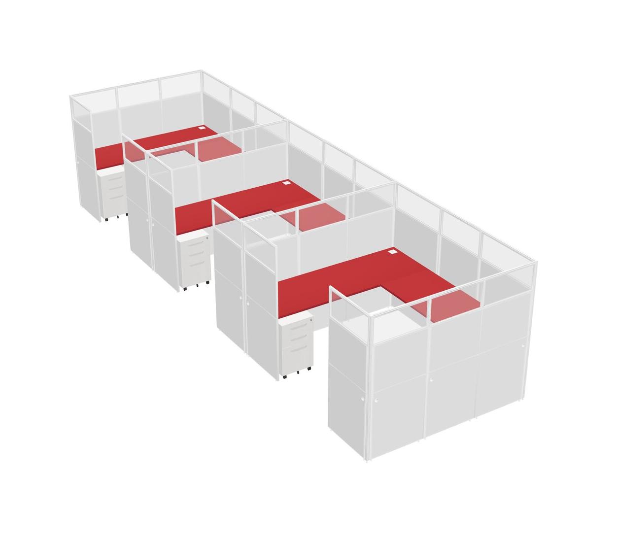 Prism Red U-shaped Panel System For 3 Person + Metal Mobile Drawers For 3 User(s)