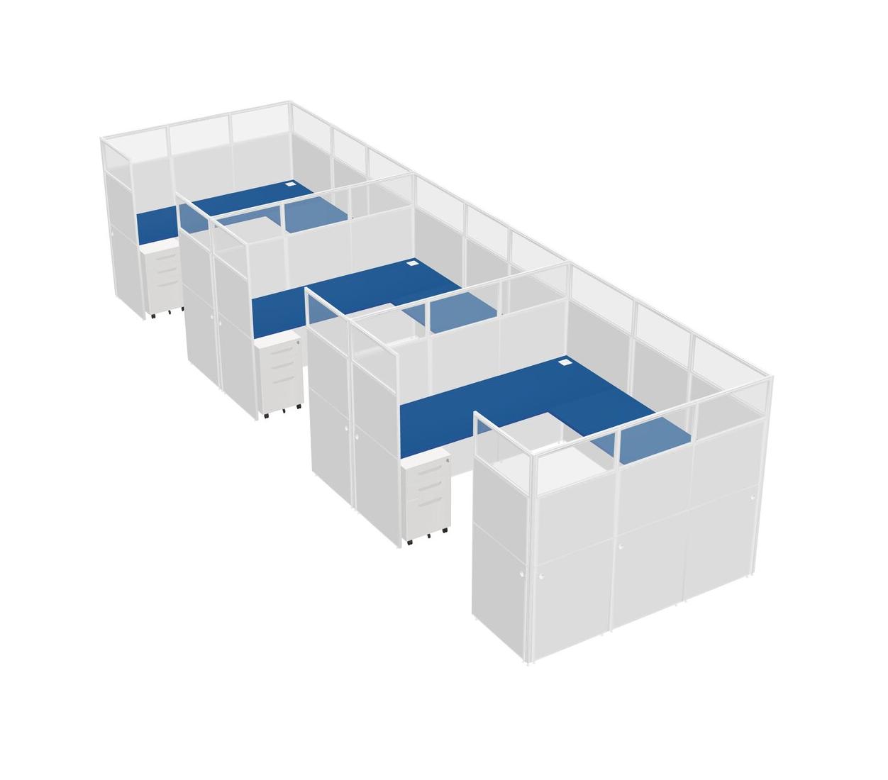 Prism Blue U-shaped Panel System For 3 Person + Metal Mobile Drawers For 3 User(s)