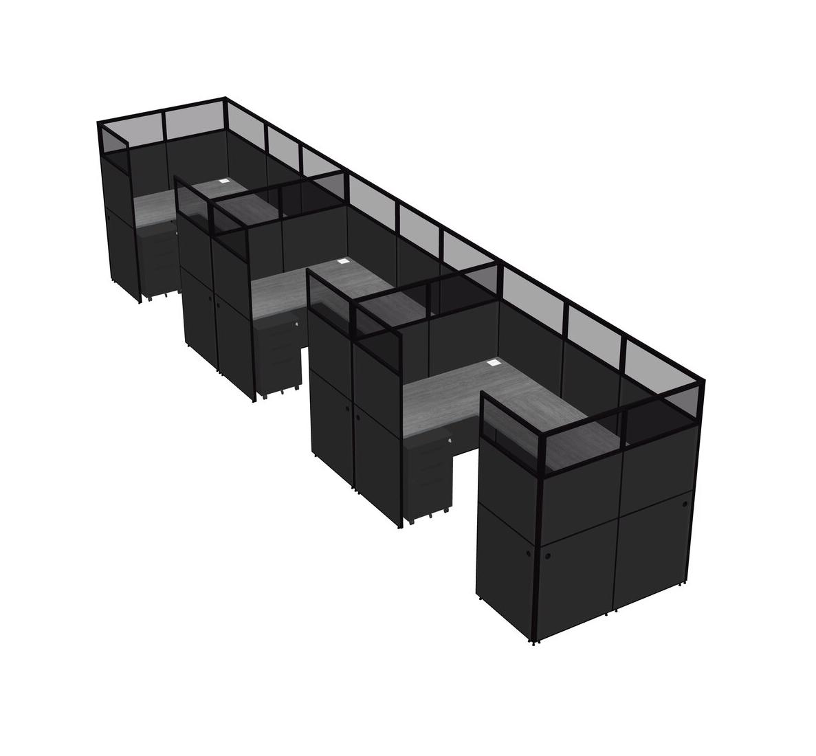 Grey U-shaped Panel System For 3 Person + Metal Mobile Drawers For 3 User(s)