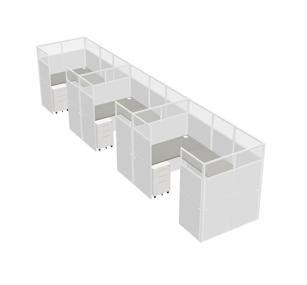 Grey Shadows U-shaped Panel System For 3 Person + Metal Mobile Drawers For 3 User(s)