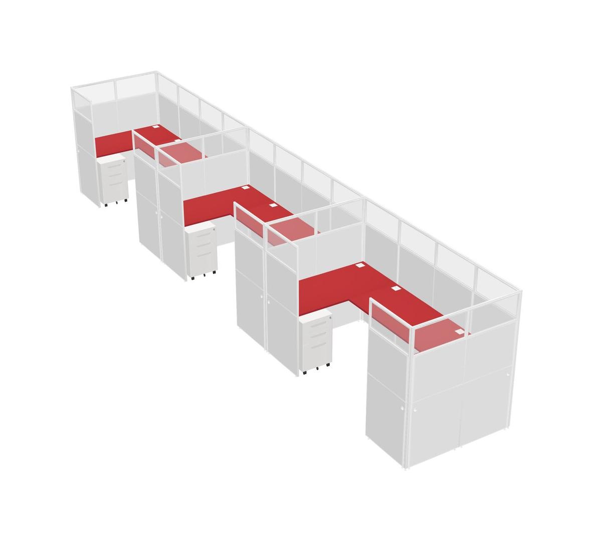 Prism Red U-shaped Panel System For 3 Person + Metal Mobile Drawers For 3 User(s)