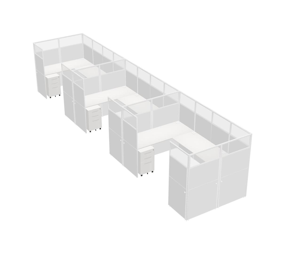 White U-shaped Panel System For 3 Person + Metal Mobile Drawers For 3 User(s)