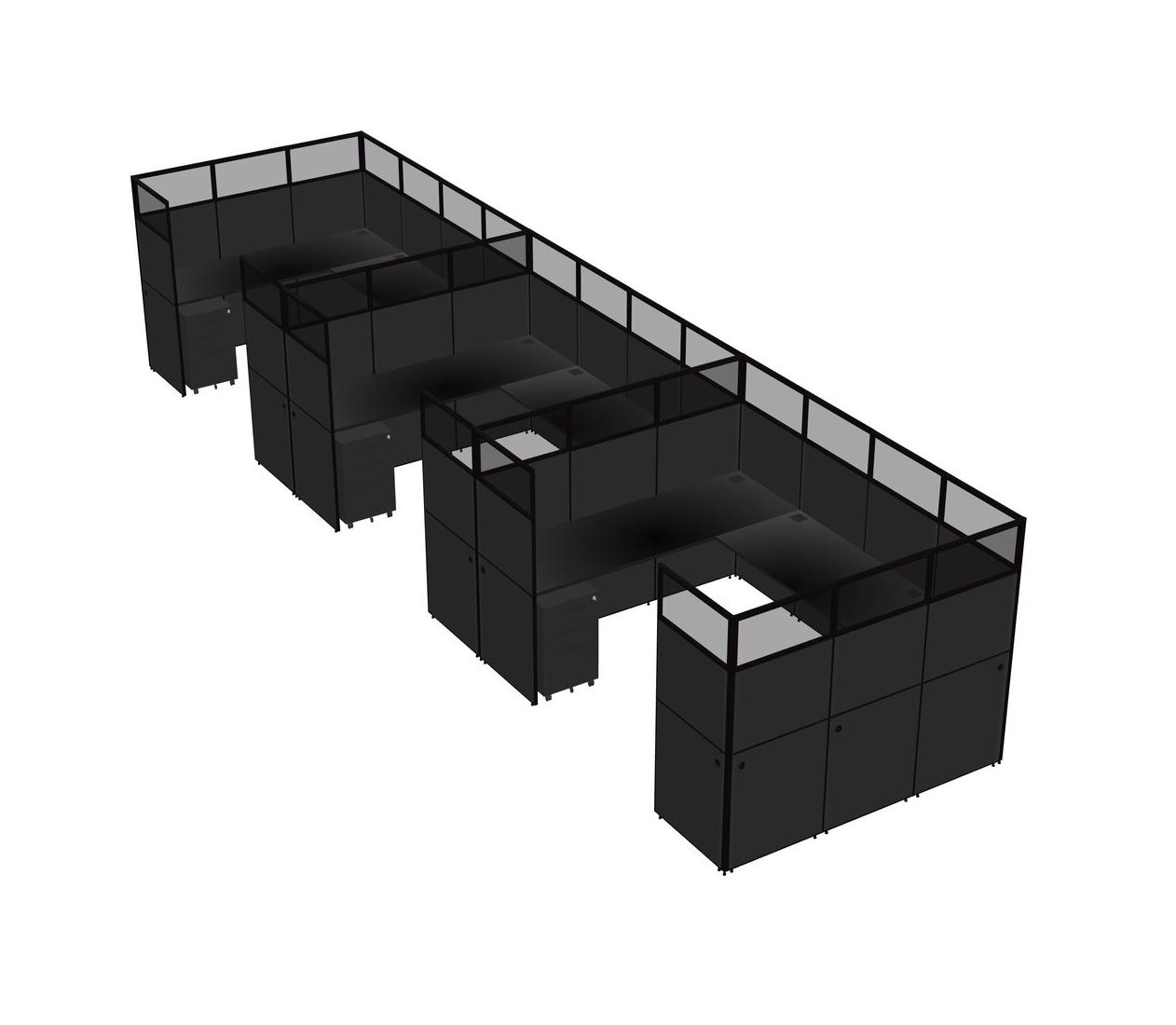Black U-shaped Panel System For 3 Person + Metal Mobile Drawers For 3 User(s)