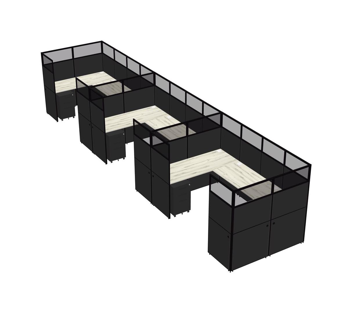 Heinne Holz U-shaped Panel System For 3 Person + Metal Mobile Drawers For 3 User(s)