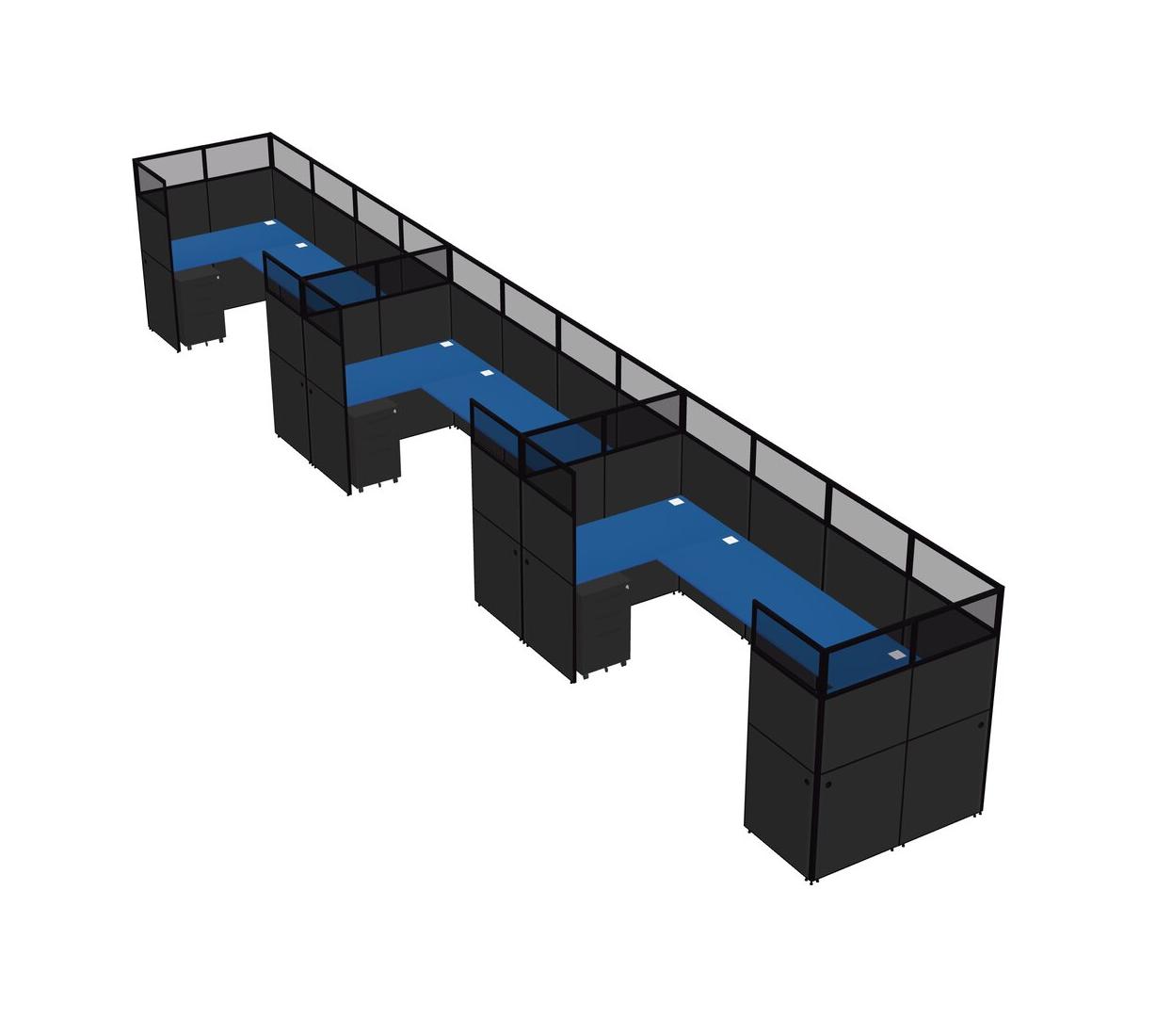 Prism Blue U-shaped Panel System For 3 Person + Metal Mobile Drawers For 3 User(s)