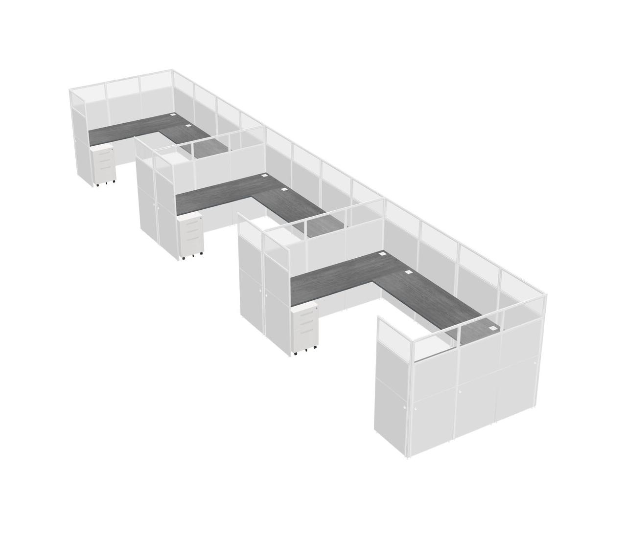 Grey U-shaped Panel System For 3 Person + Metal Mobile Drawers For 3 User(s)