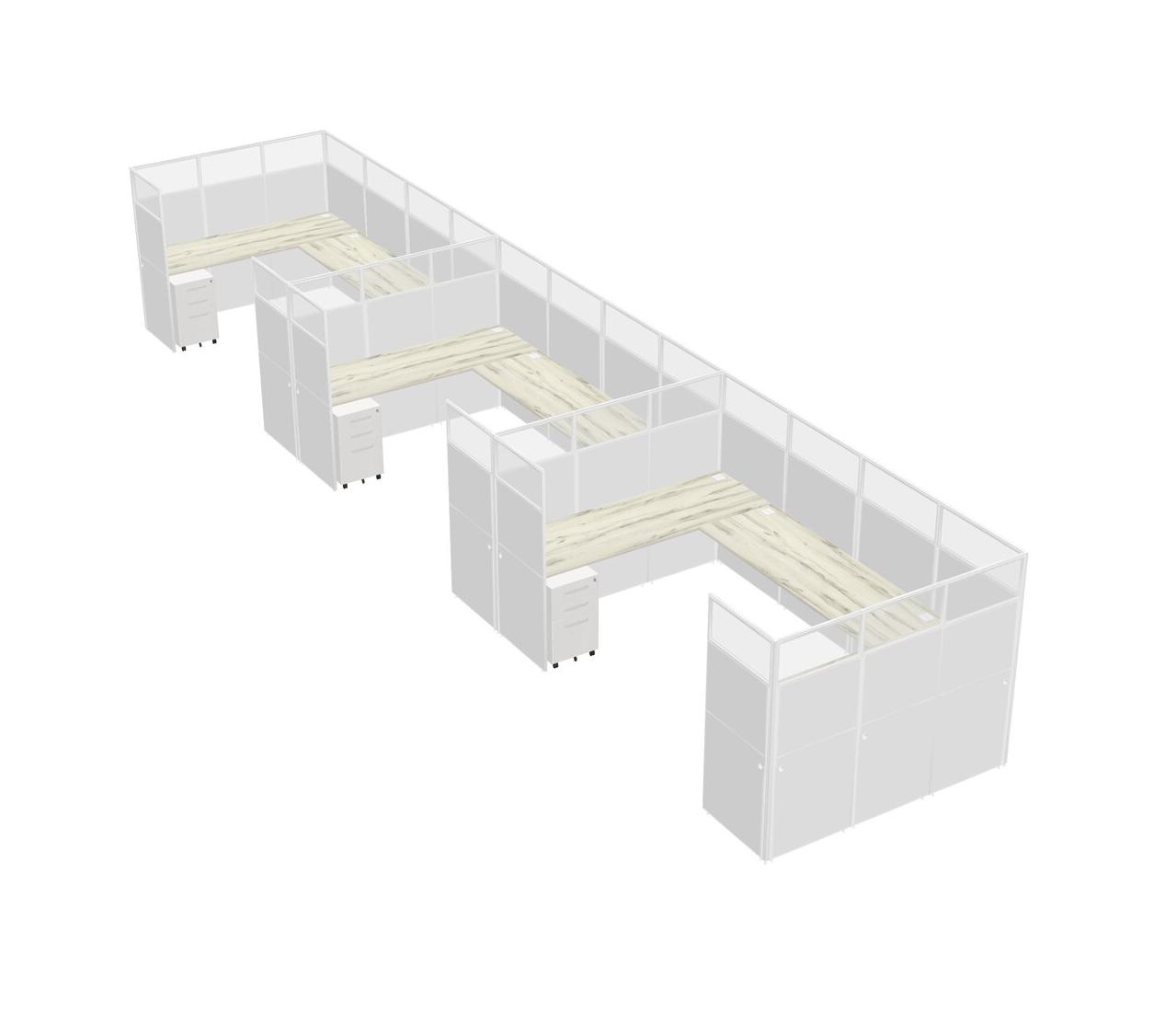Heinne Holz U-shaped Panel System For 3 Person + Metal Mobile Drawers For 3 User(s)