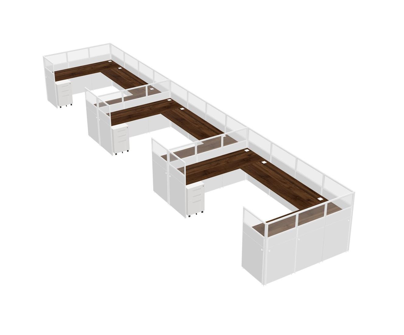 Columbia Walnut U-shaped Panel System For 3 Person + Metal Mobile Drawers For 3 User(s)