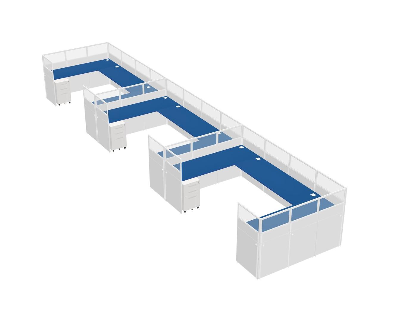 Prism Blue U-shaped Panel System For 3 Person + Metal Mobile Drawers For 3 User(s)
