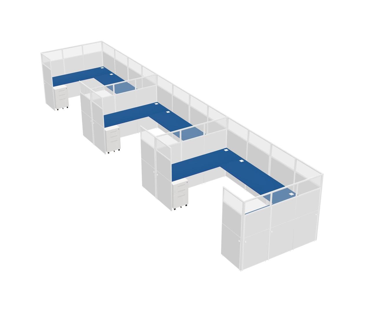 Prism Blue U-shaped Panel System For 3 Person + Metal Mobile Drawers For 3 User(s)