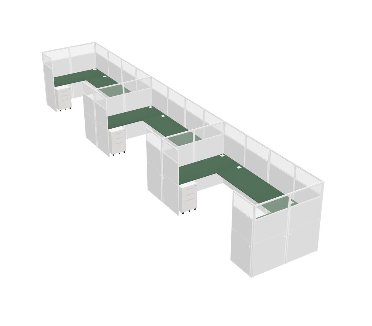 Green U-shaped Panel System For 3 Person + Metal Mobile Drawers For 3 User(s)