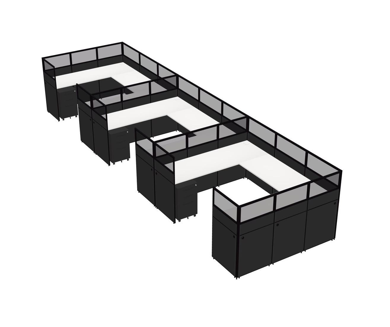 White U-shaped Panel System For 3 Person + Metal Mobile Drawers For 3 User(s)