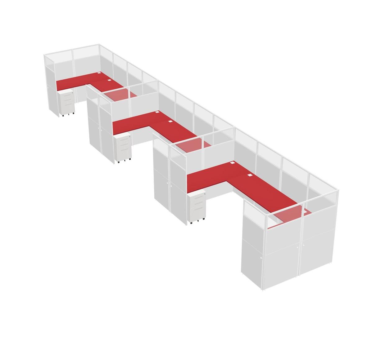 Prism Red U-shaped Panel System For 3 Person + Metal Mobile Drawers For 3 User(s)