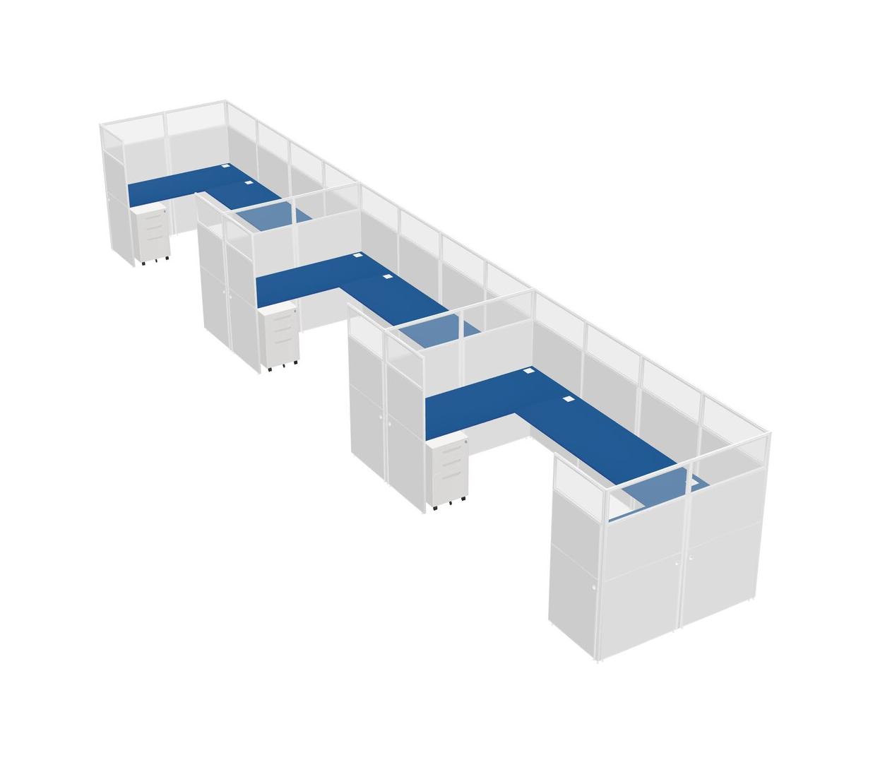 Prism Blue U-shaped Panel System For 3 Person + Metal Mobile Drawers For 3 User(s)