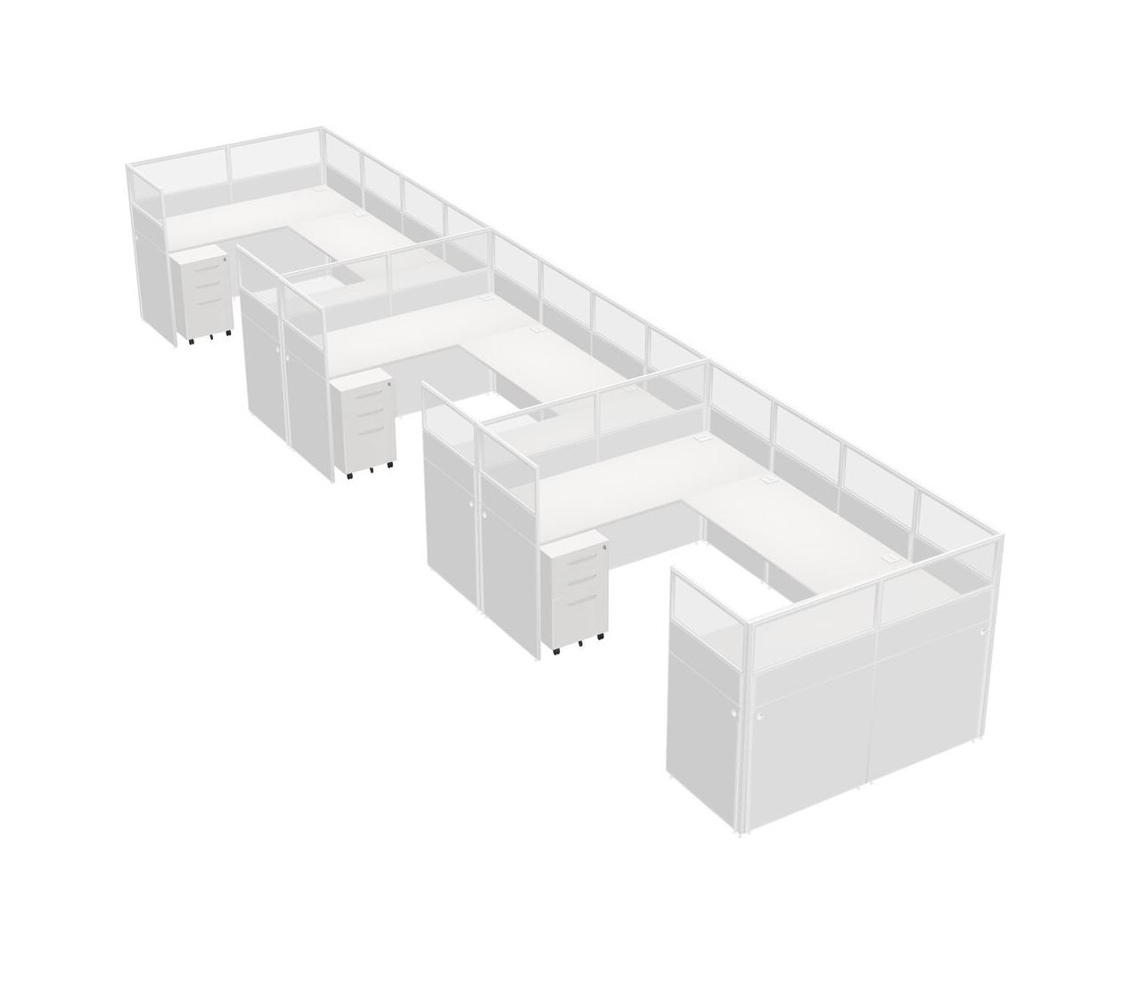 White U-shaped Panel System For 3 Person + Metal Mobile Drawers For 3 User(s)