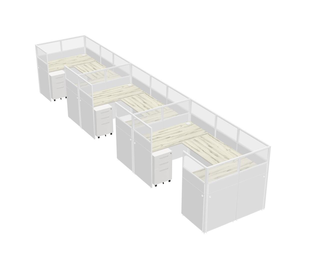 Heinne Holz U-shaped Panel System For 3 Person + Metal Mobile Drawers For 3 User(s)